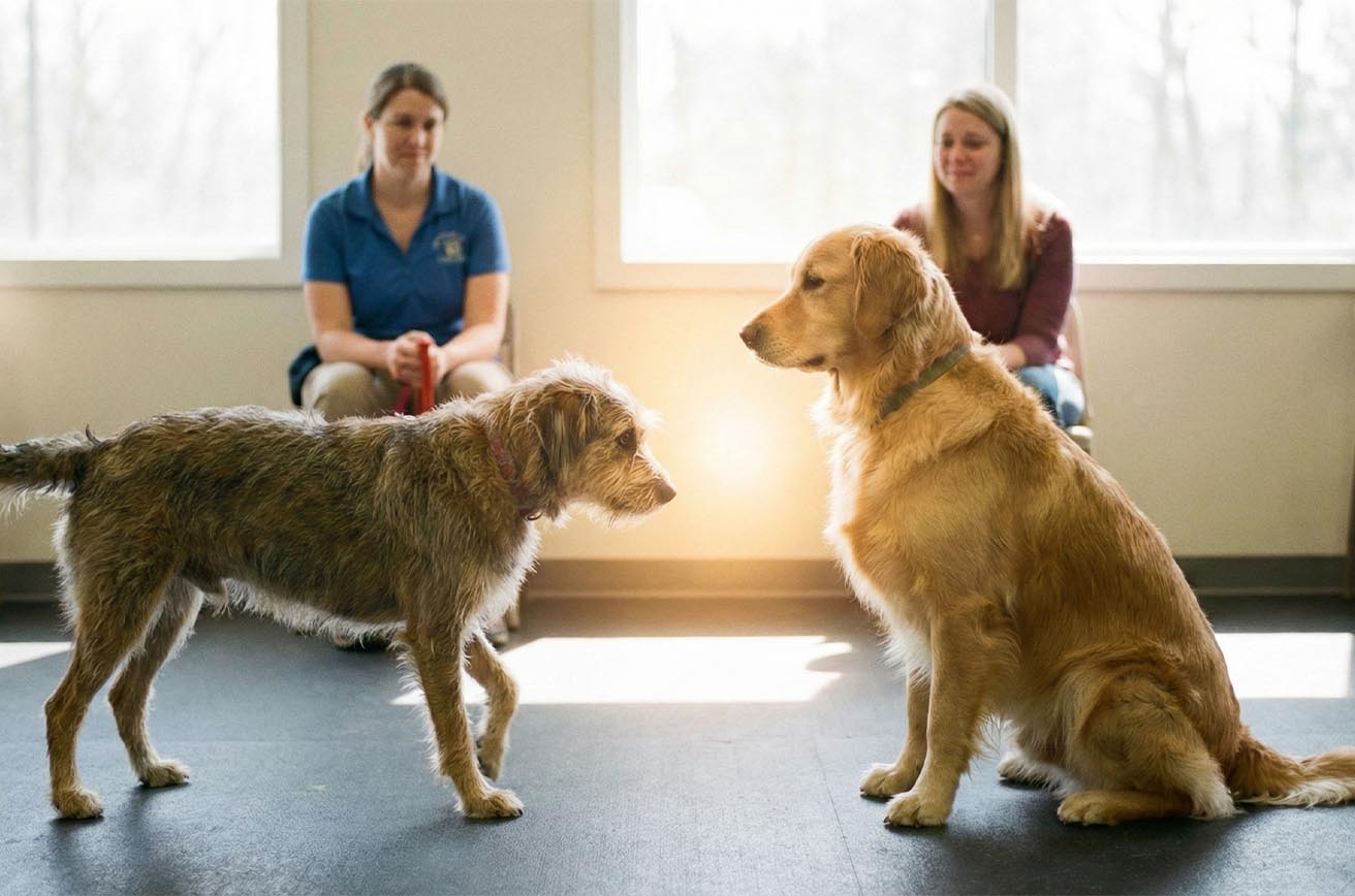 教室のドアがそっと開いた日、その子は、飼い主さんの足の影にかくれるようにして入ってきました。新しい場所に足を踏み入れた瞬間、身体がきゅっと固まり、目だけが不安そうに動いている。